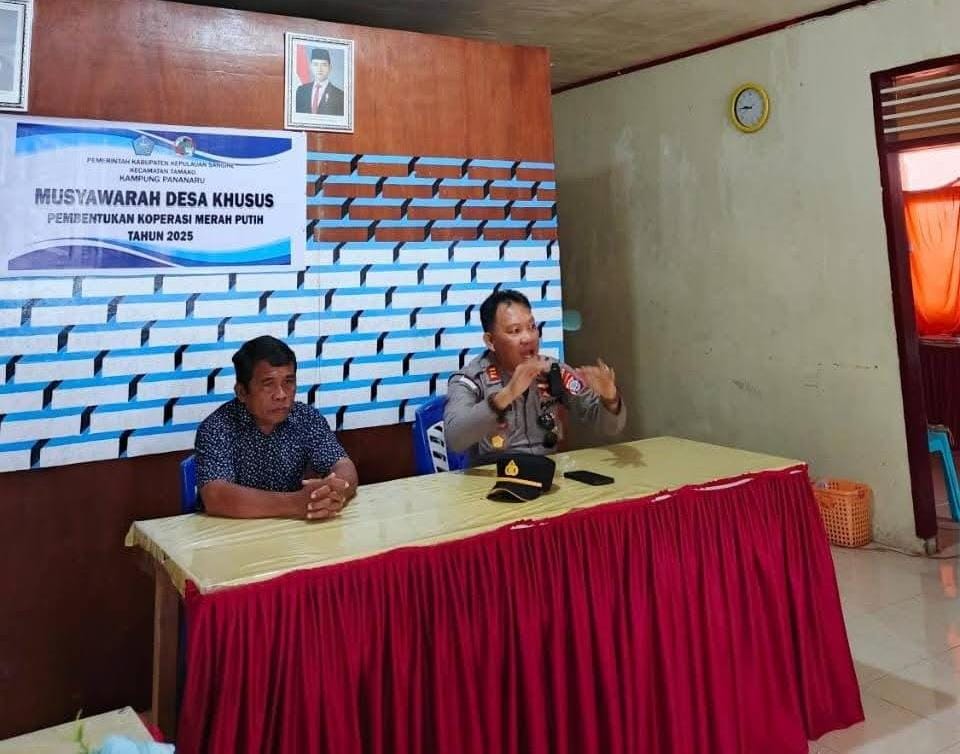 com, TAMAKO - Pada Jumat, 13 Juni 2025, pukul 09.30 Wita, Kapolsek Tamako, AKP Meldy Roring, S.H., didampingi Kanit Binmas, AIPTU Hendra Mentang, serta Bhabinkamtibmas, BRIPKA Darwin Kalerat, melakukan kegiatan “Jumat Curhat” di Balai Kampung Pananaru, Kecamatan Tamako. Kegiatan ini bertujuan untuk mendengarkan aspirasi masyarakat sekaligus memperkuat komunikasi antara pihak kepolisian dan warga.